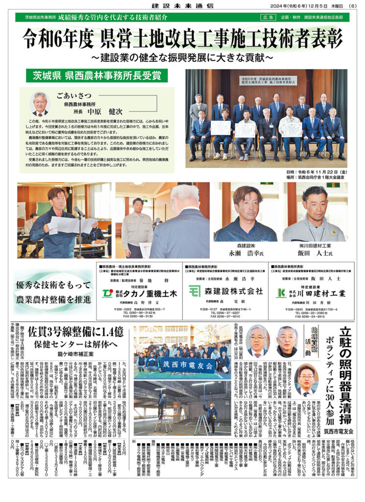 令和6年度 県営土地改良工事施工技術者表彰 茨城県 県西農林事務所長受賞