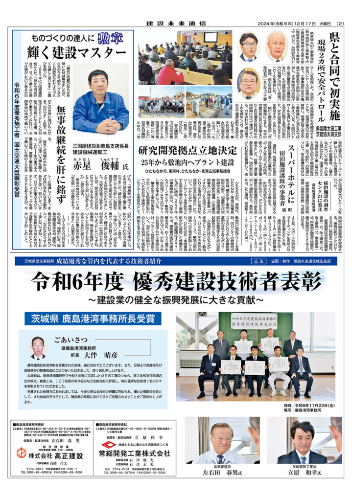 令和6年度 優秀建設技術者表彰 茨城県 鹿島港湾事務所長受賞