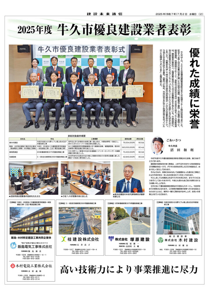 2025年度 牛久市優良建設業者表彰