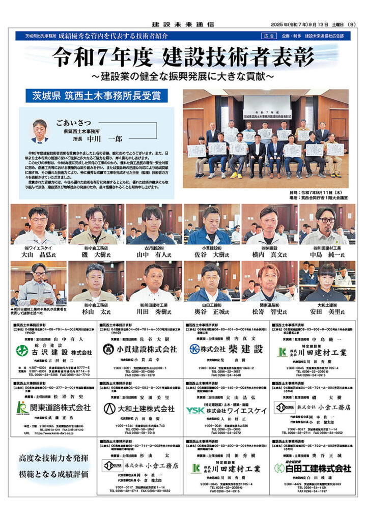 令和7年度 建設技術者表彰 茨城県 筑西土木事務所長受賞