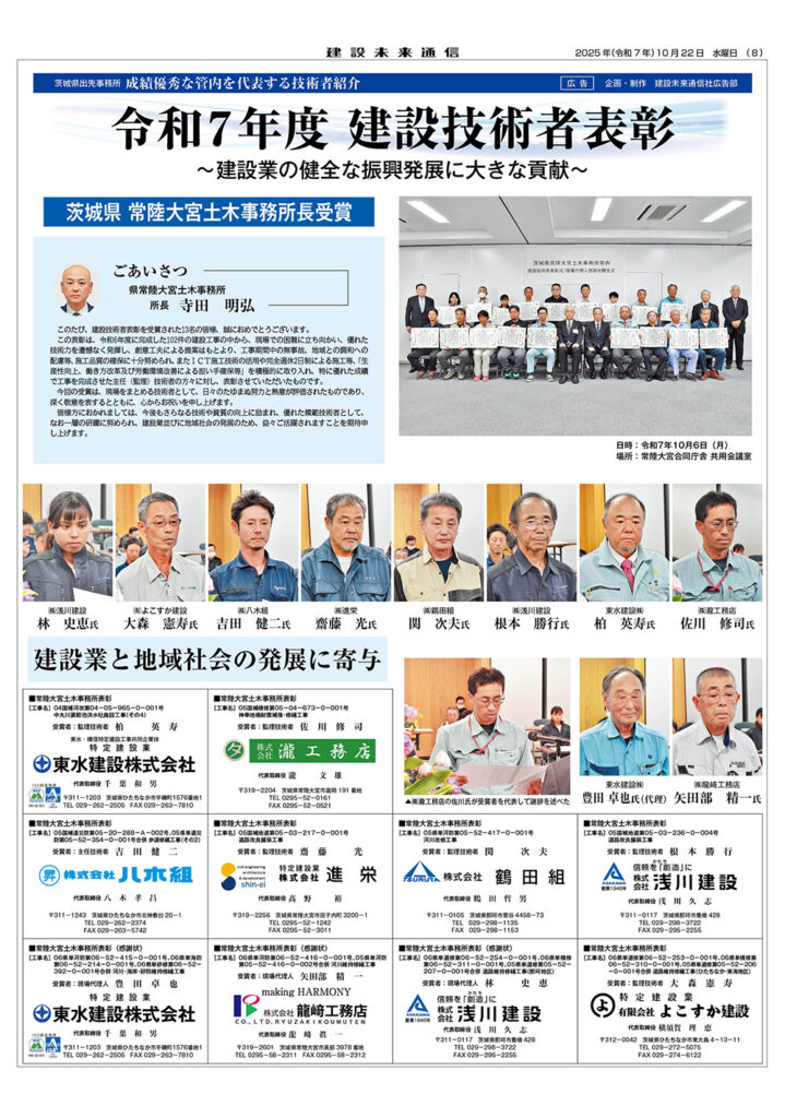 令和7年度 建設技術者表彰 茨城県 常陸大宮土木事務所長受賞
