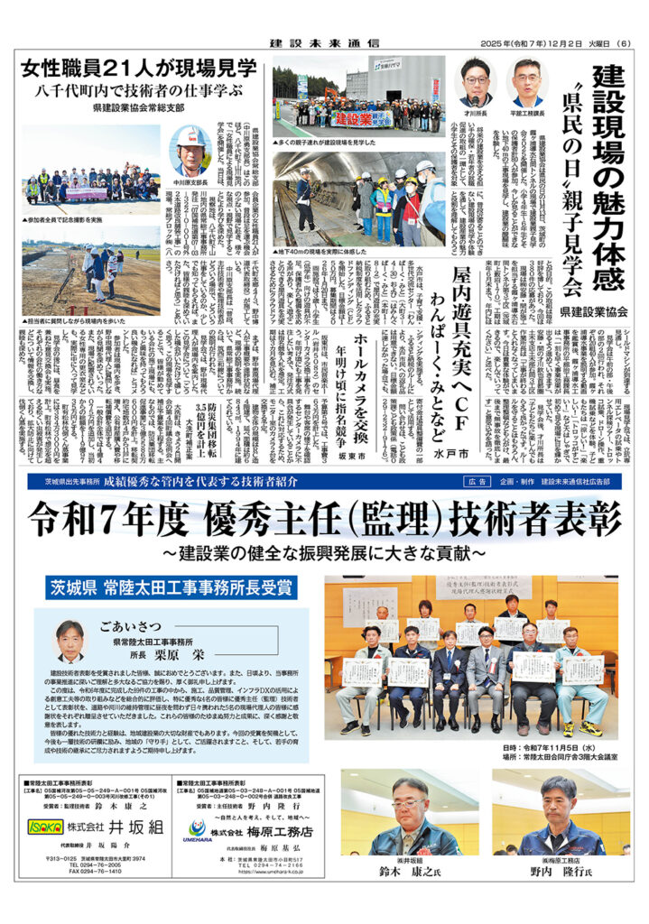 令和7年度 優秀主任(監理)技術者表彰 茨城県 常陸太田工事事務所長受賞