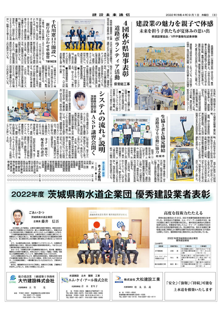 2022年度 茨城県南水道企業団優秀建設業者表彰