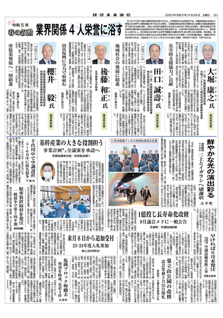 令和5年 春の叙勲(大堀康之氏、田口誠壽氏、後藤和正氏、櫻井毅氏)