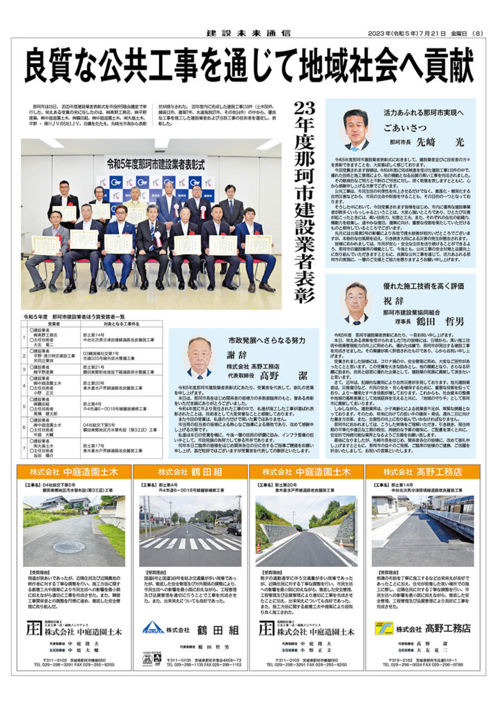 23年度 那珂市建設業者表彰
