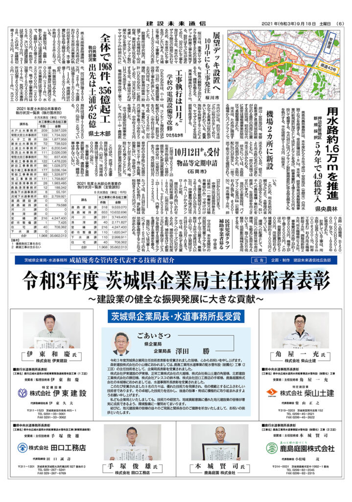 令和3年度 茨城県企業局主任技術者表彰 茨城県企業局長・水道事務所長受賞