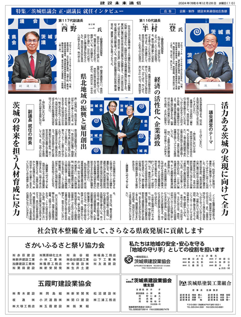 茨城県議会 正・副議長 就任インタビュー