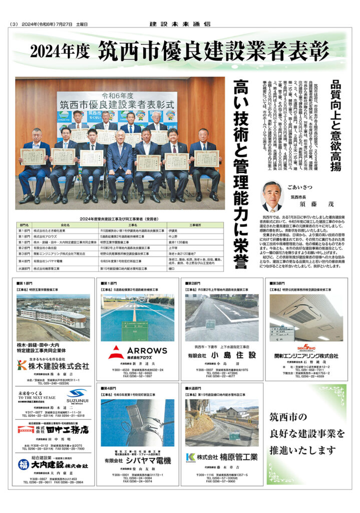 2024年度 筑西市優良建設業者表彰