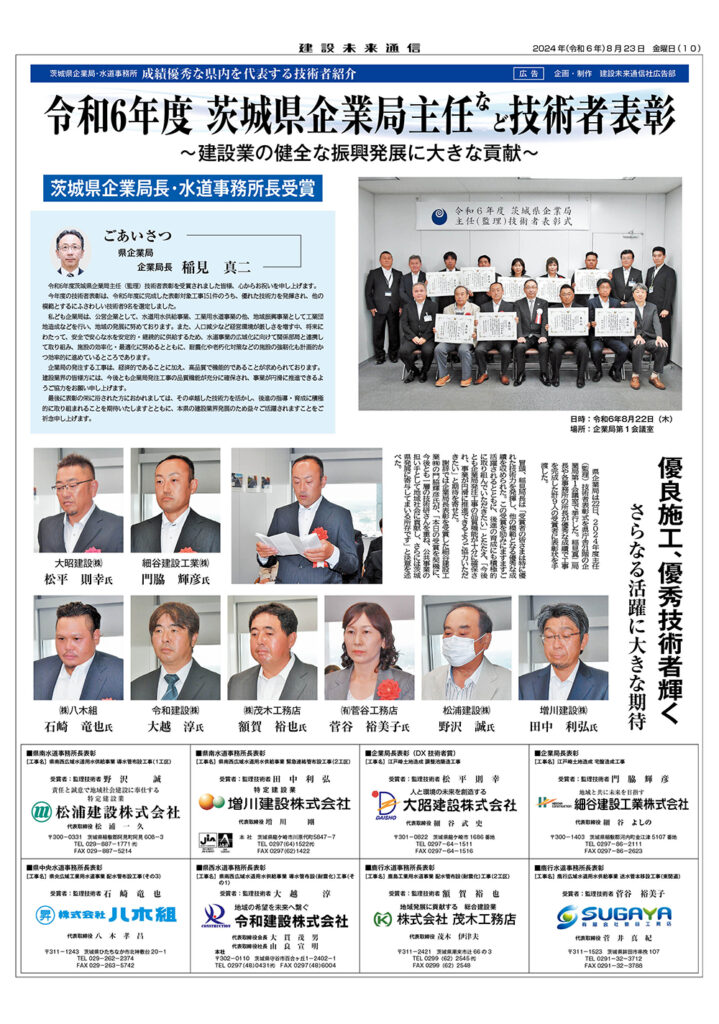 令和6年度 茨城県企業局主任など技術者表彰 茨城県企業局長・水道事務所長受賞
