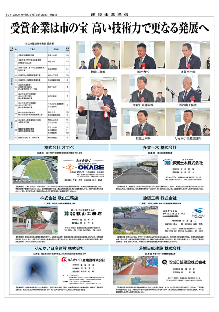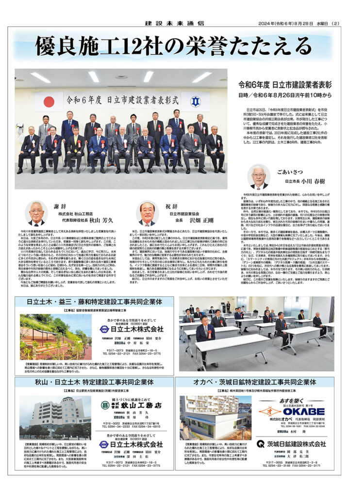 令和6年度 日立市建設業者表彰