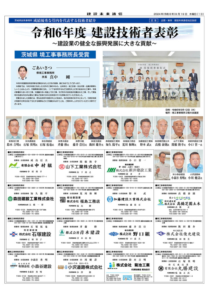 令和6年度 建設技術者表彰 茨城県 境工事事務所長受賞