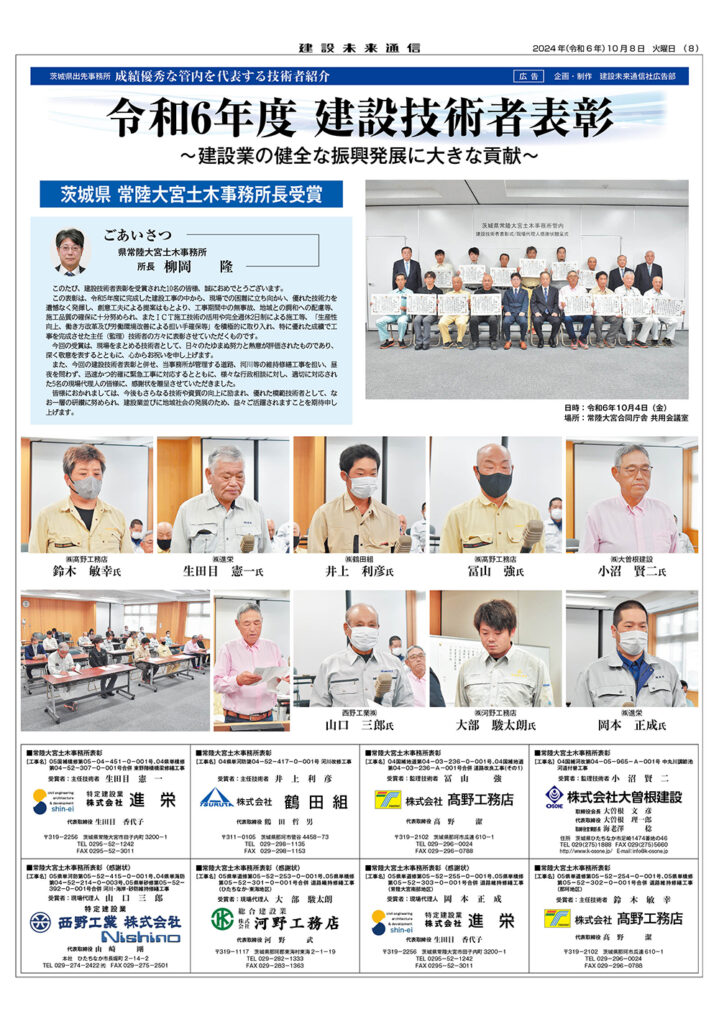 令和6年度 建設技術者表彰 茨城県 常陸大宮土木事務所長受賞