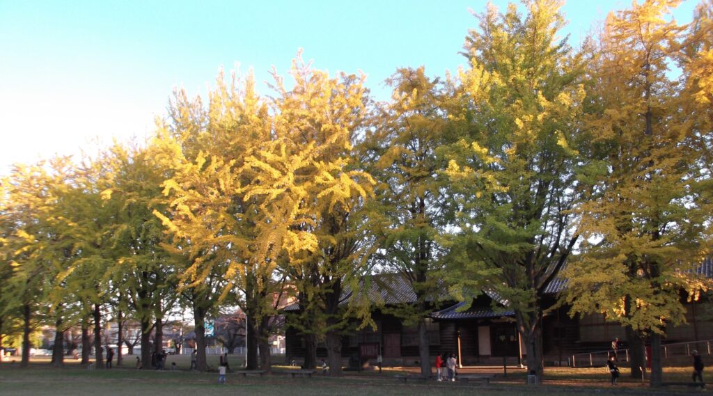 紅葉の季節です。私が勤める茨城県立歴史館の銀杏並木も黄金色に色づいています。