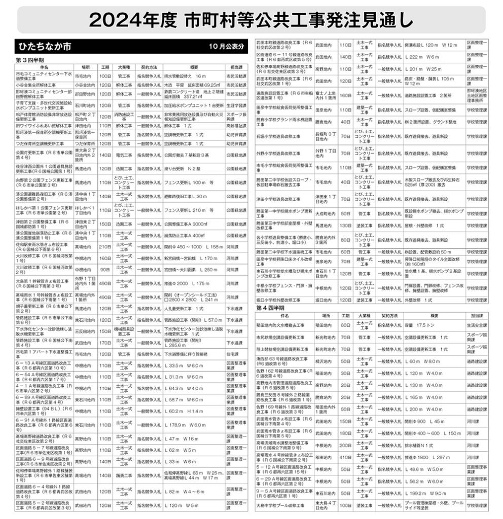 ひたちなか市発注見通し(10月公表分)