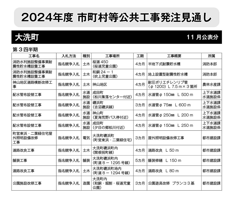 大洗町発注見通し(11月公表分)