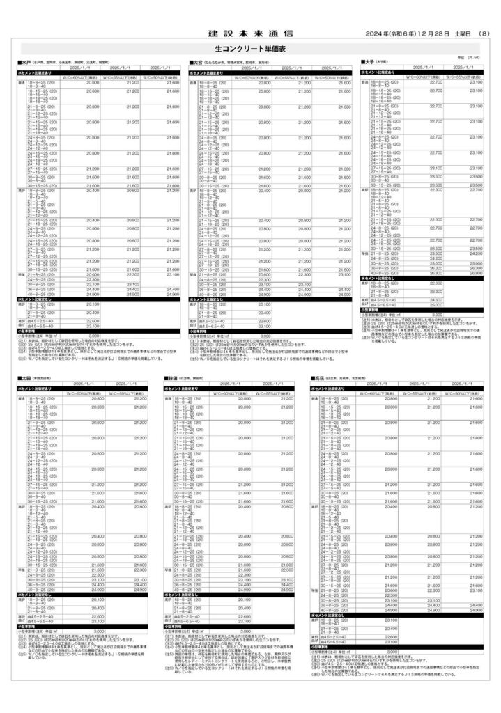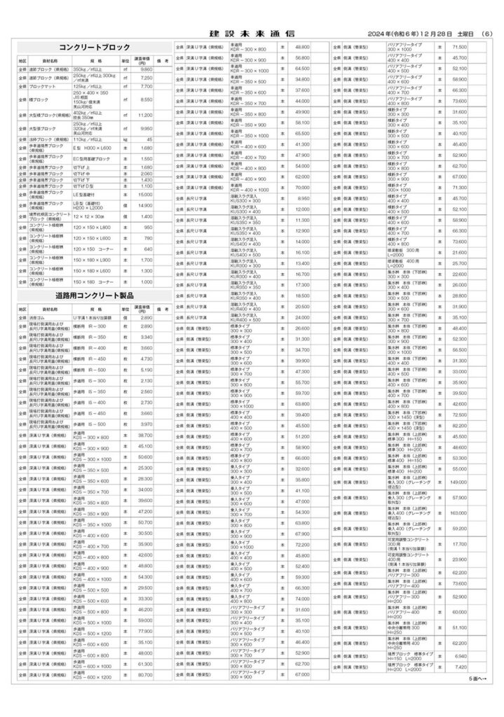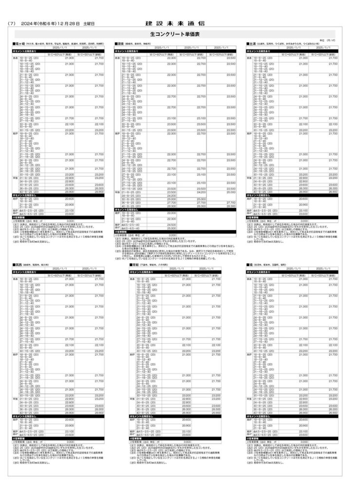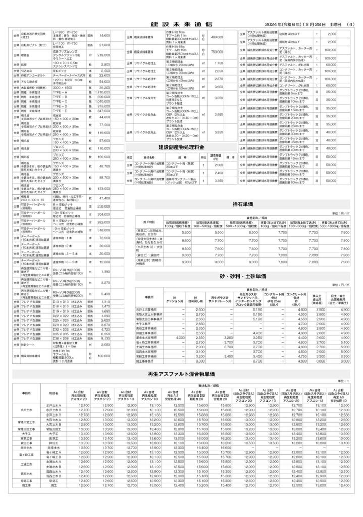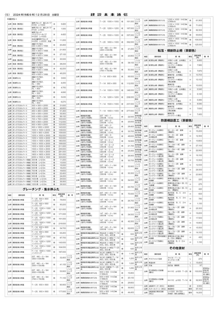 県土木部資材単価表(2025年1月1日改定)