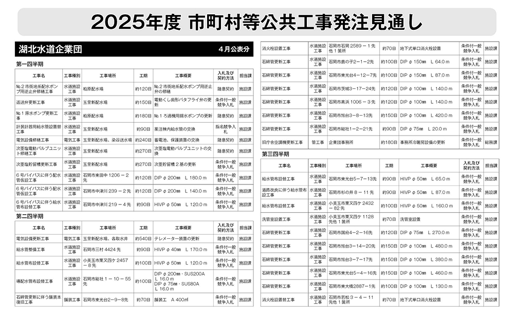 湖北水道企業団発注見通し(4月公表分)