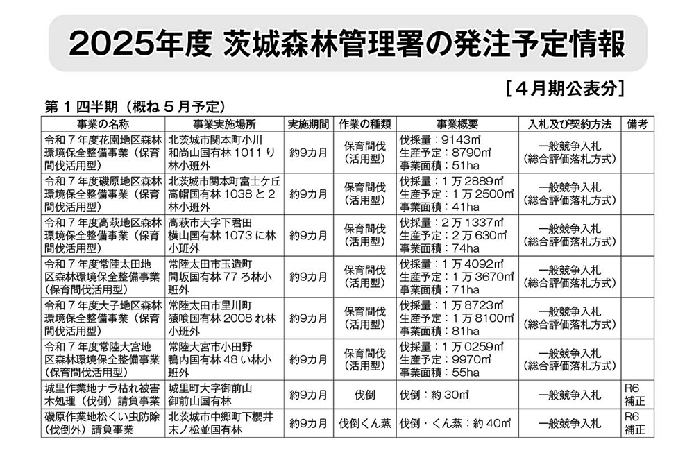 2025年度 茨城森林管理署 発注見通し(4月期公表分)