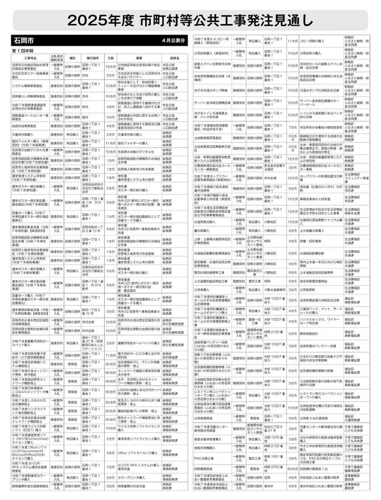 石岡市発注見通し(4月公表分)