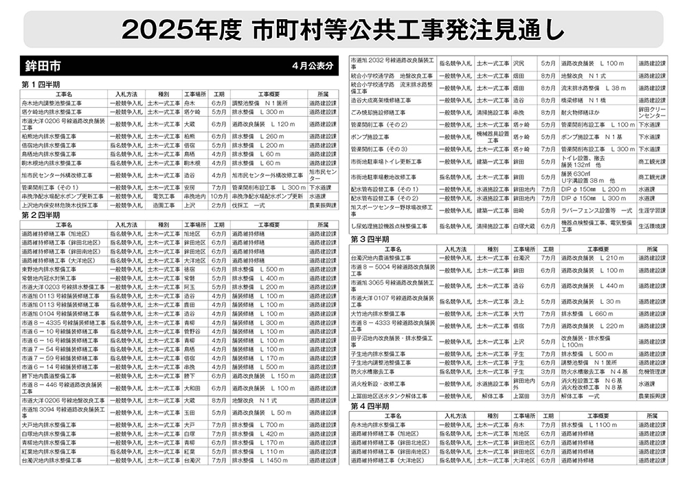 鉾田市発注見通し(4月公表分)