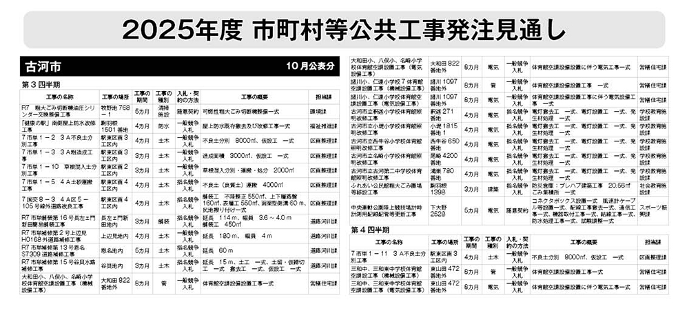 古河市 発注見通し(10月公表分)