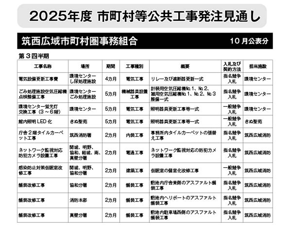 筑西広域市町村圏事務組合 発注見通し(10月公表分)