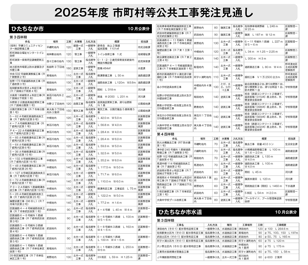 ひたちなか市 発注見通し(10月公表分)