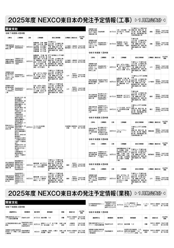NEXCO東日本 発注見通し(2026年1月期公表)
