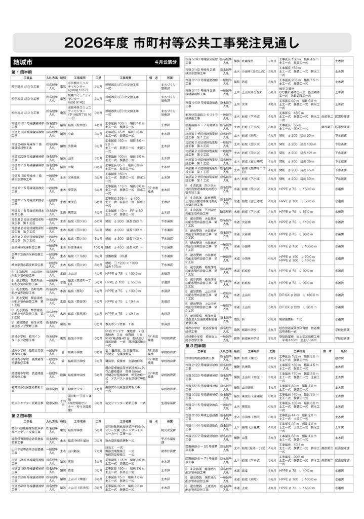 結城市 発注見通し(4月公表分)