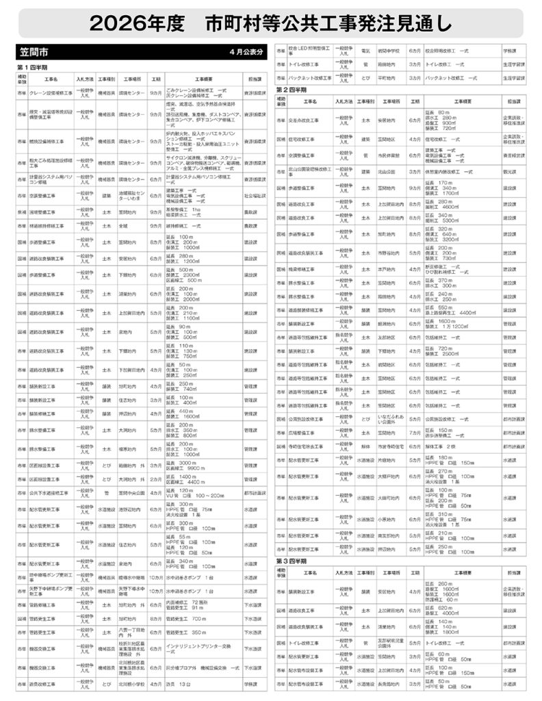 笠間市 発注見通し(4月公表分)