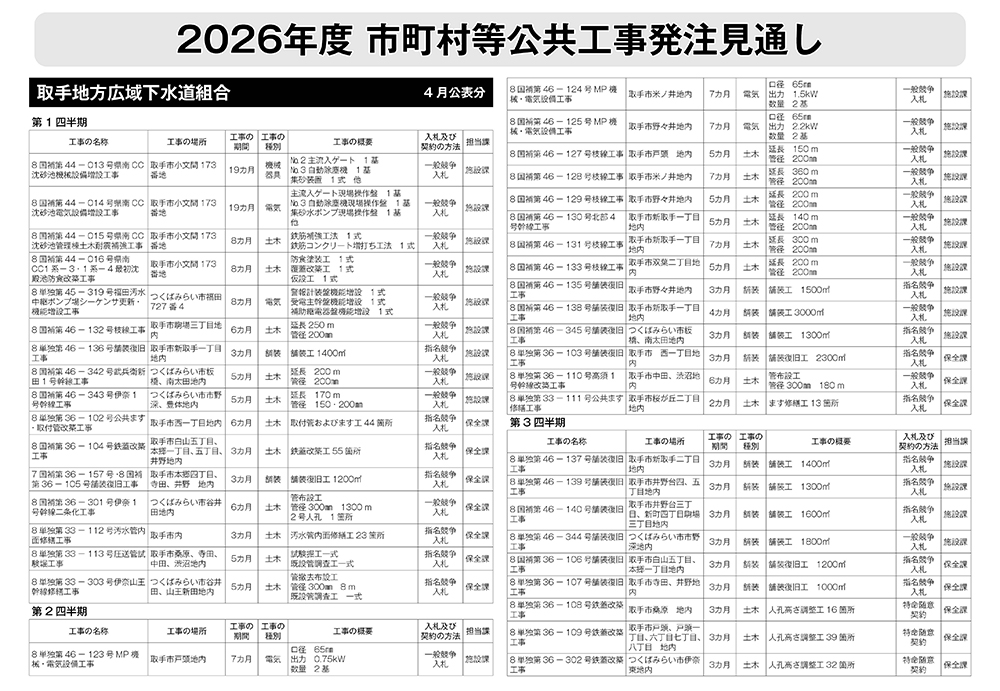 取手地方広域下水道組合 発注見通し(4月公表分)