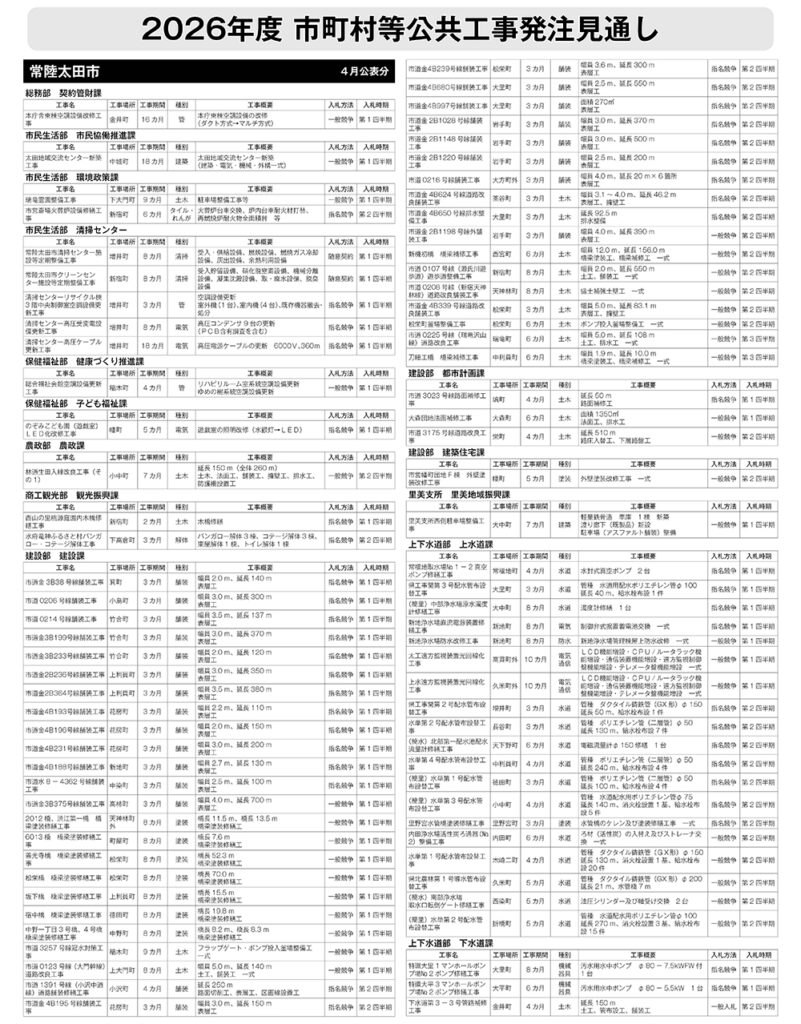 常陸太田市 発注見通し(4月公表分)