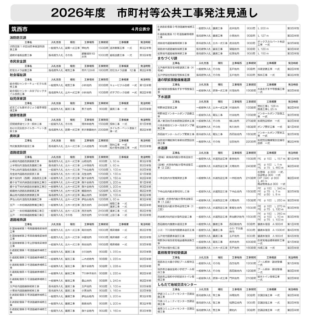 筑西市 発注見通し(4月公表分)