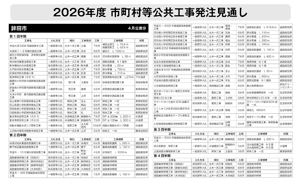 鉾田市 発注見通し(4月公表分)