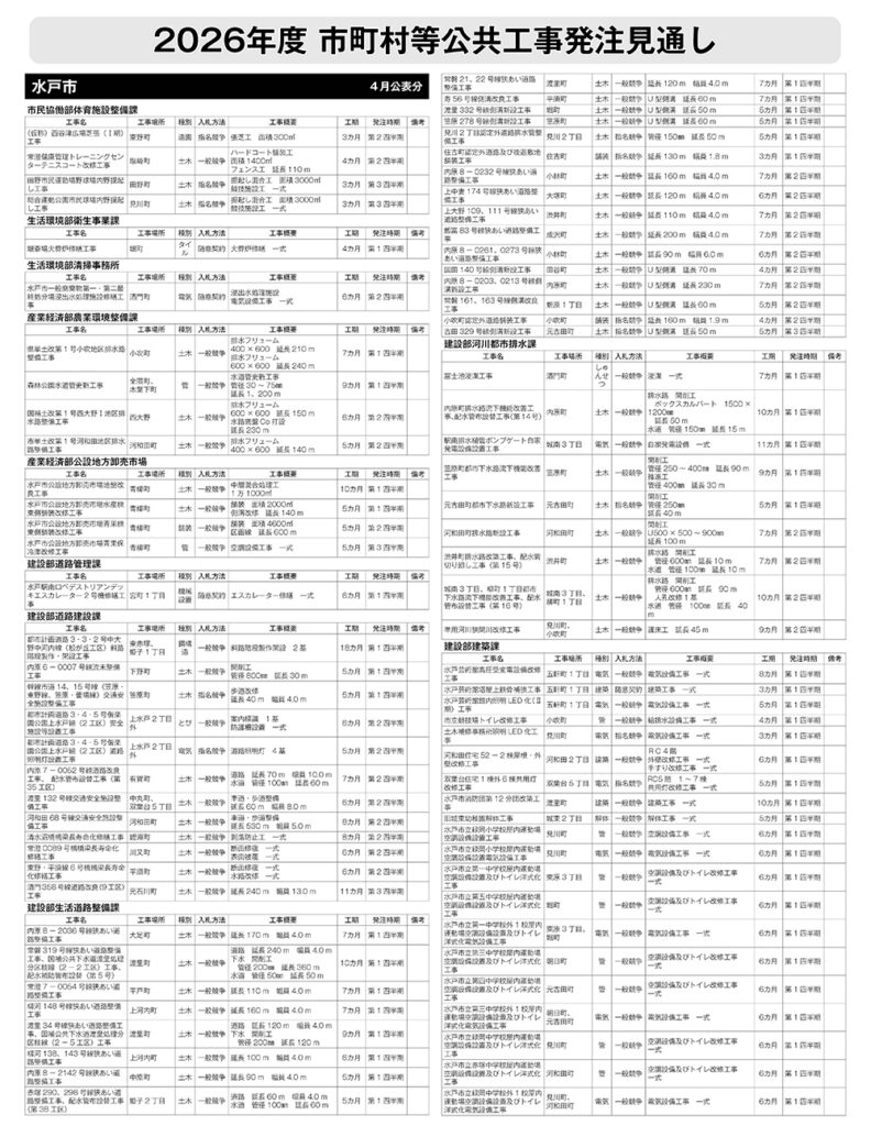 水戸市 発注見通し(4月公表分)