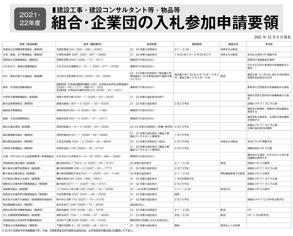 2021・22年度 組合・企業団の入札参加申請要領