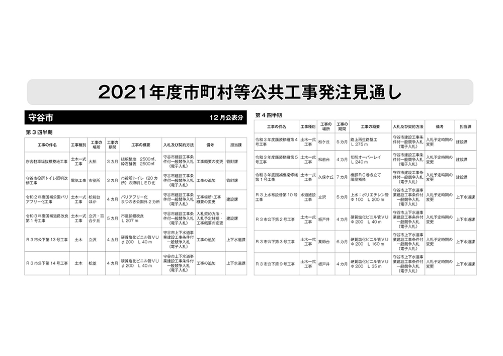 守谷市発注見通し(2021年12月公表)
