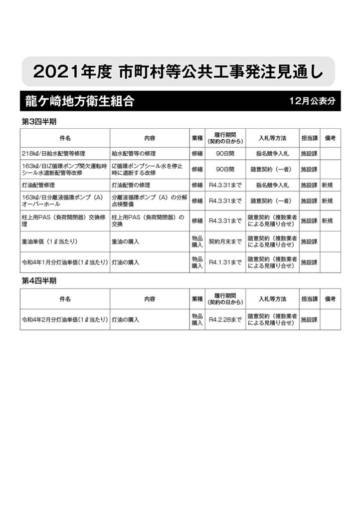 龍ヶ崎地方衛生組合発注見通し(2021年12月公表)