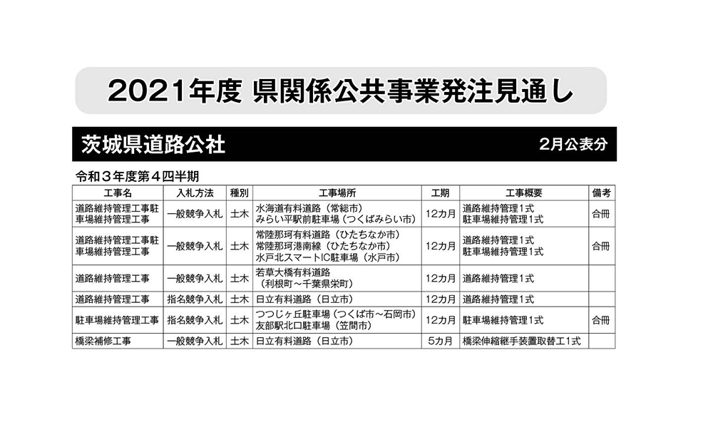 2021年度 県関係公共事業発注見通し(2022年2月公表)