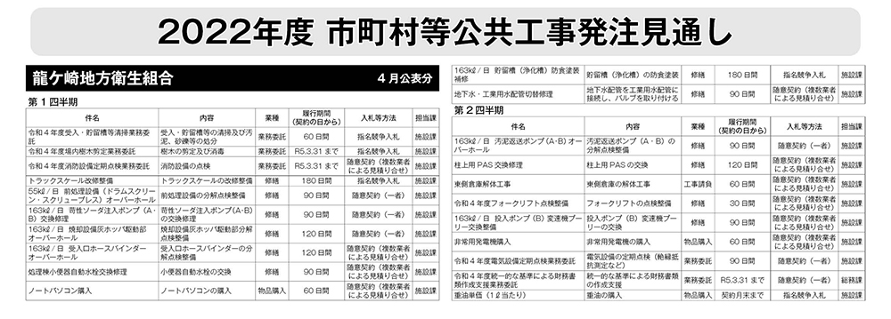 龍ケ崎地方衛生組合発注見通し(2022年度4月公表)