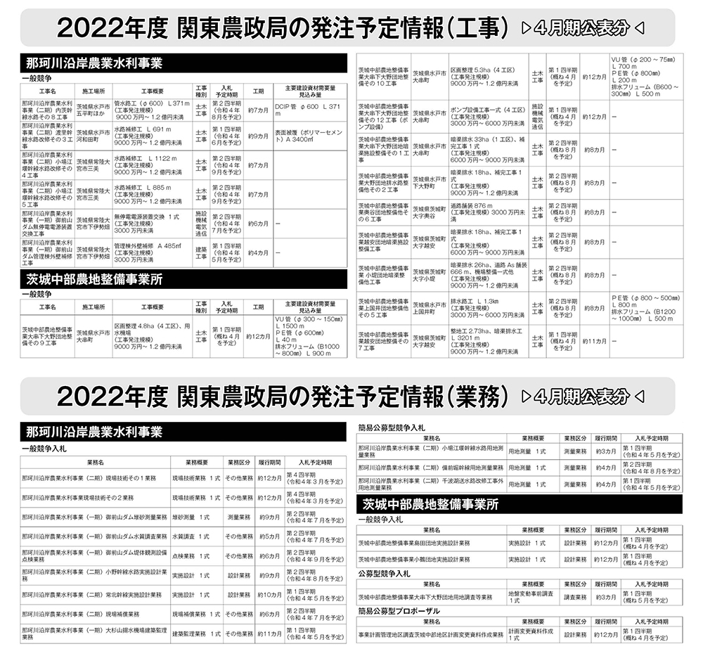 関東農政局 発注予定情報(2022年度4月公表)