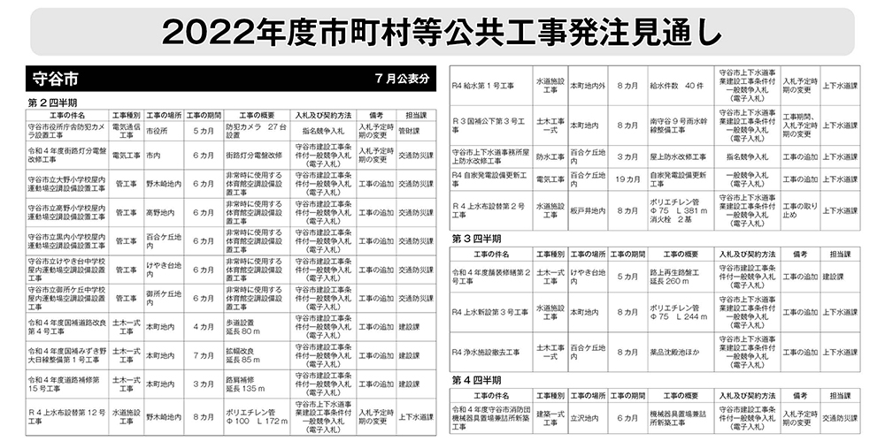 守谷市発注見通し(2022年度7月公表)