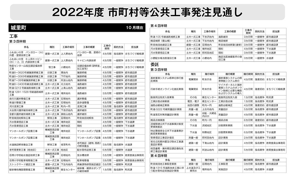 城里町発注見通し(2022年度10月公表)