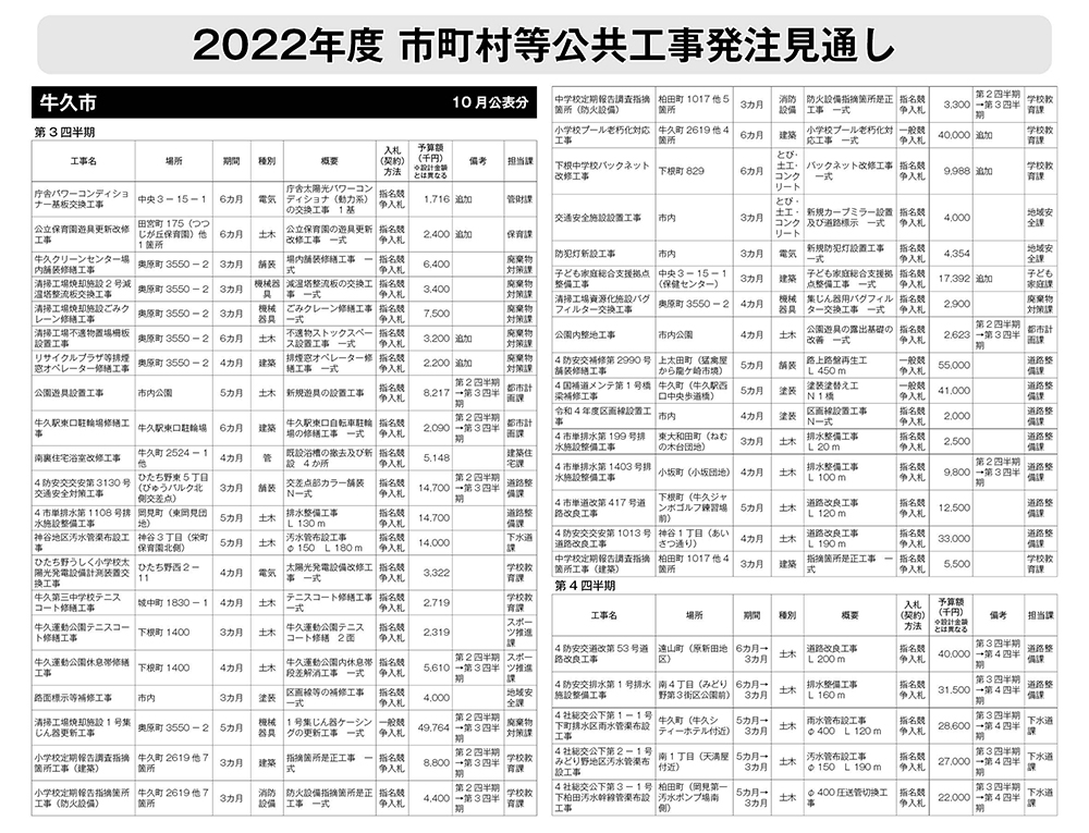 牛久市発注見通し(2022年度10月公表)