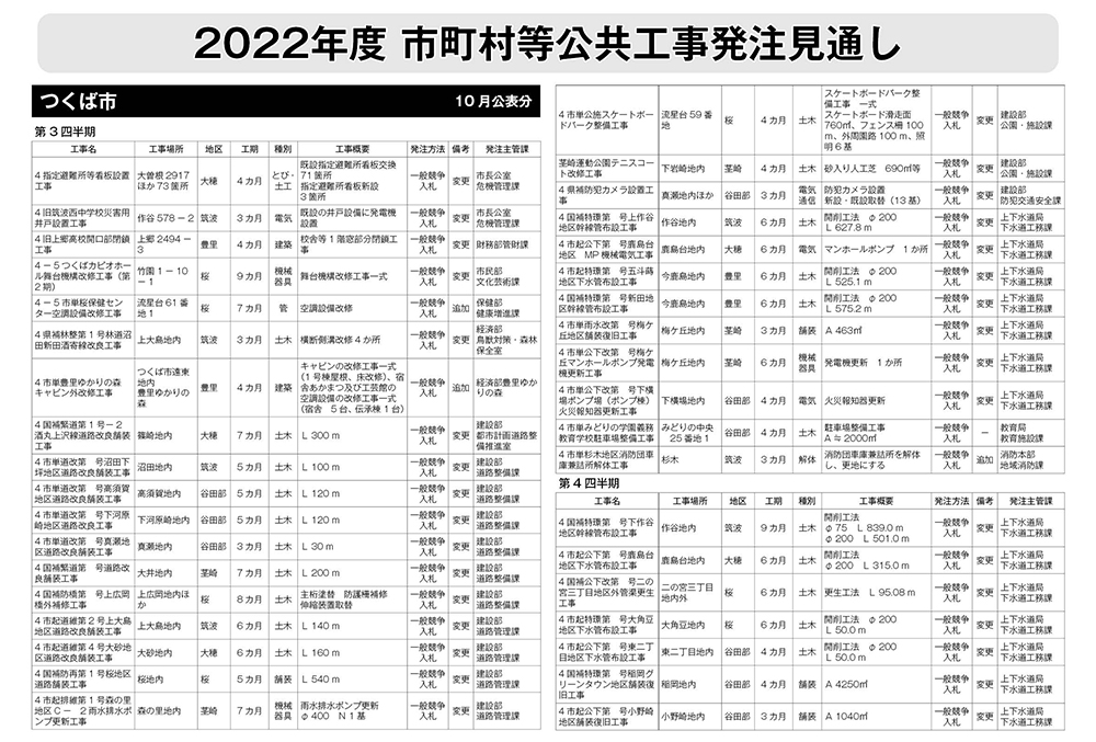 つくば市 発注見通し(2022年10月公表)