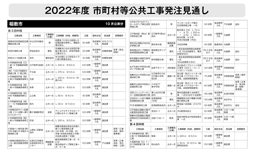稲敷市 発注見通し(2022年10月公表)
