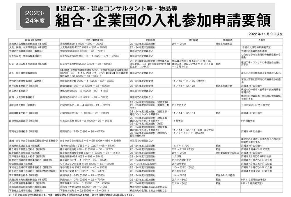 2023・24年度 組合・企業団の入札参加申請要領(2022年11月9日現在)