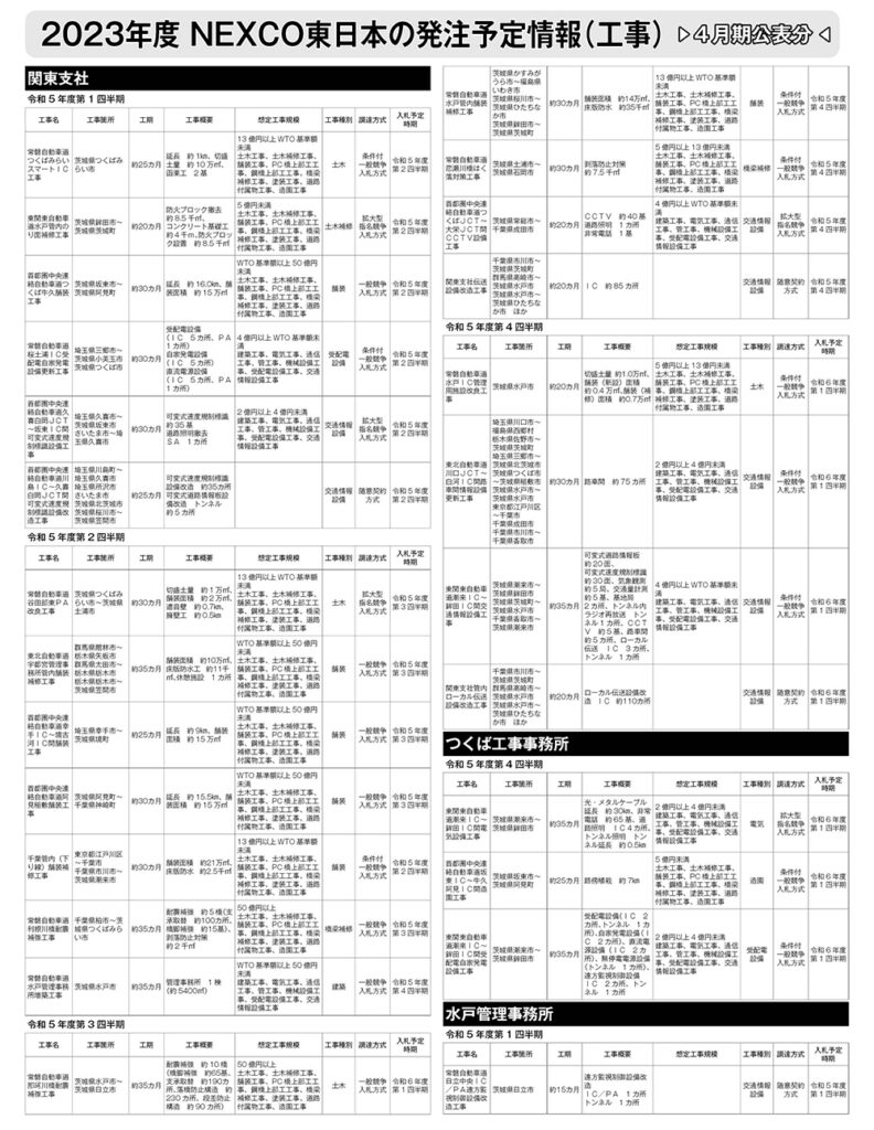 NEXCO東日本 発注見通し(2023年4月期公表)
