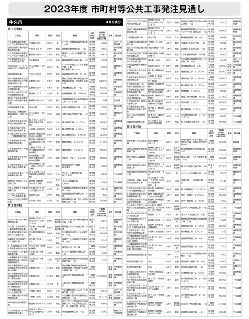 牛久市 発注見通し(2023年4月公表)