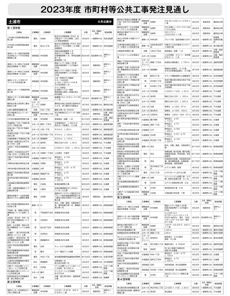 土浦市 発注見通し(2023年4月公表)